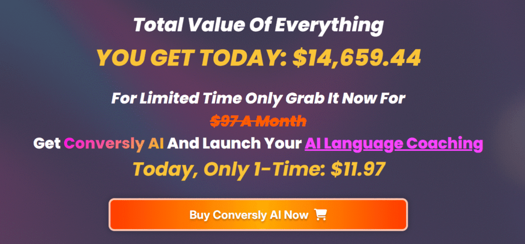 Ready to launch your own AI Language Coaching Empire? Click Here to Get Conversly AI Now at the Special Discounted Price!